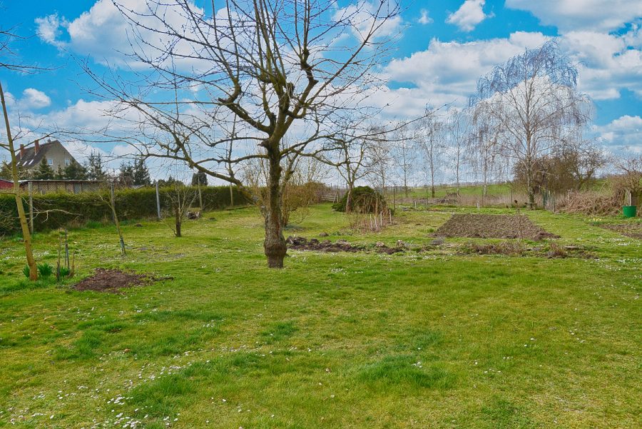 Großes Grundstück 2.747, nur ca. zwei Drittel davon sind eingezäunt, ca. ein Drittel befindet sich hinter dem Gartenzaun nach hinten gelegen auf dem Feld